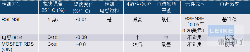 表1.電流檢測(cè)方法的優(yōu)缺點(diǎn)